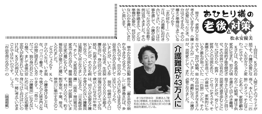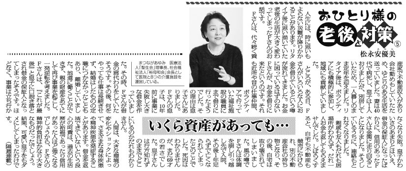 日刊ゲンダイ 連載「おひとり様の老後と対策」